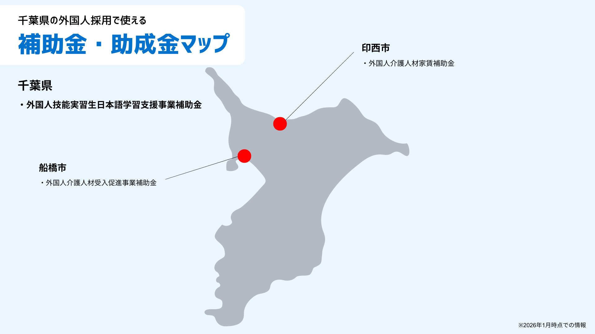 千葉県および県内自治体では、外国人材の受入れを促進するため、介護・医療分野を中心に複数の補助金制度を設けています。