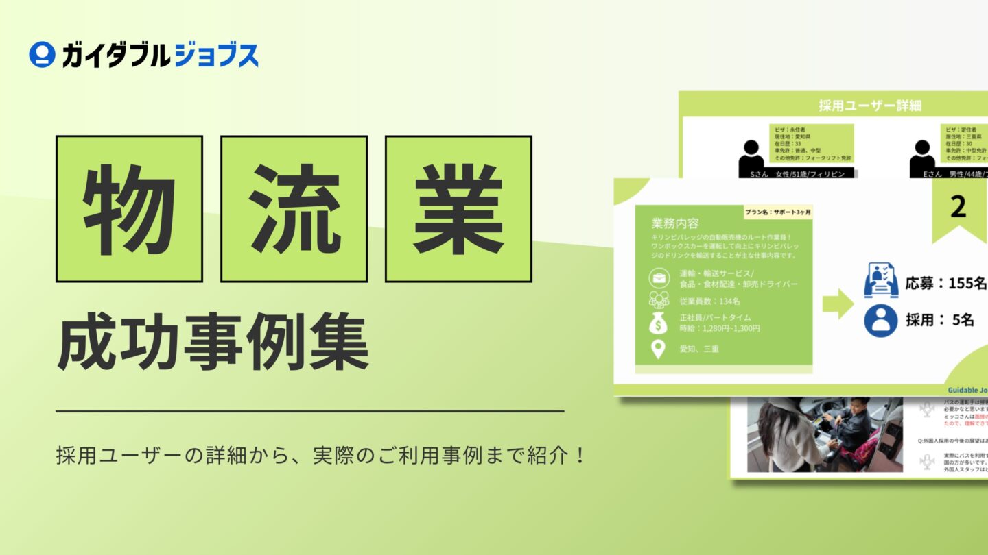 本資料は物流業の外国人採用の成功事例を公開しています。ぜひ、この機会に御社の採用活動にお役立て頂けますと幸いです。
