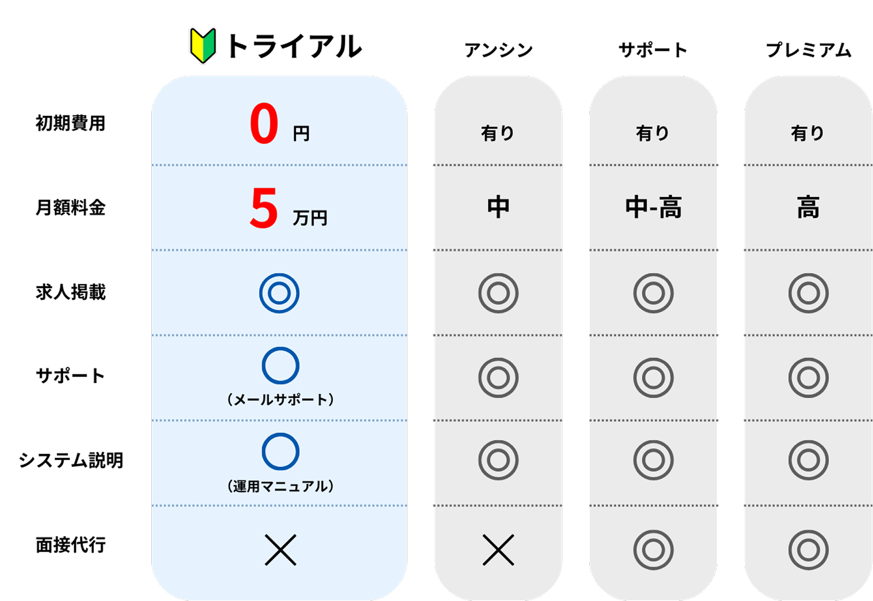 - 外国人採用に関するメールサポートのみご対応させていただきます。その分、安価なプランとなっております。